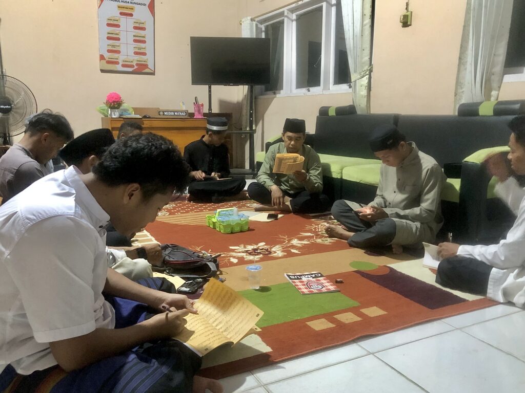 Bungadidi – Kegiatan rutin setiap pekan di Ponpes Nurul Huda Putra adalah Kajian Kitab atau Taklim Kitab yang dipimpin langsung oleh K. H. Didin Yasir selaku Pimpinan Pesantren. Dengan tujuan penguatan iman dan penyatuan hati seluruh staf pesantren, maka kegiatan ini diadakan secara rutin, yaitu sekali dalam sepekan, tepatnya setiap malam sabtu ba’da isya’.